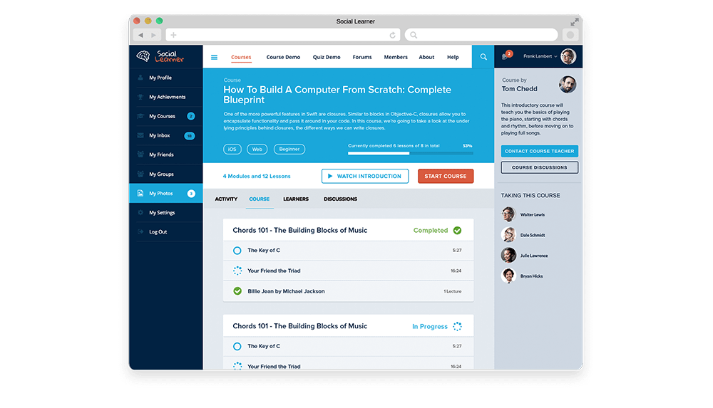 Социальные сообщества обучения, как популярные социальные цели или фитнес отслеживания приложений, принести более высокий уровень участия за счет использования фактора людей. LMS питание от WordPress и BuddyPress предоставляет студентам возможность подключения к новым друзьям, сотрудничать, отправлять сообщения, зарабатывать значки — все мероприятия, которые способствуют более высокий уровень мотивации для обучения и успеха.