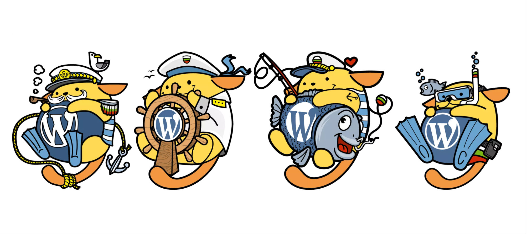 Расположение, естественно, вдохновили морской набор наклейки для посетителей, показывая четыре новых конструкций wapuu. Коллекция была разработана векторных графических иллюстраторов на GraphicMama, дизайн партнера для WordCamp. Вы никогда не задумывались, сколько усилий уходит на проектирование всех индивидуальных творений в мире wapuus? Проверьте видео ниже, чтобы увидеть, как WordCamp Варна вwapuu конструкций были приведены к жизни.
