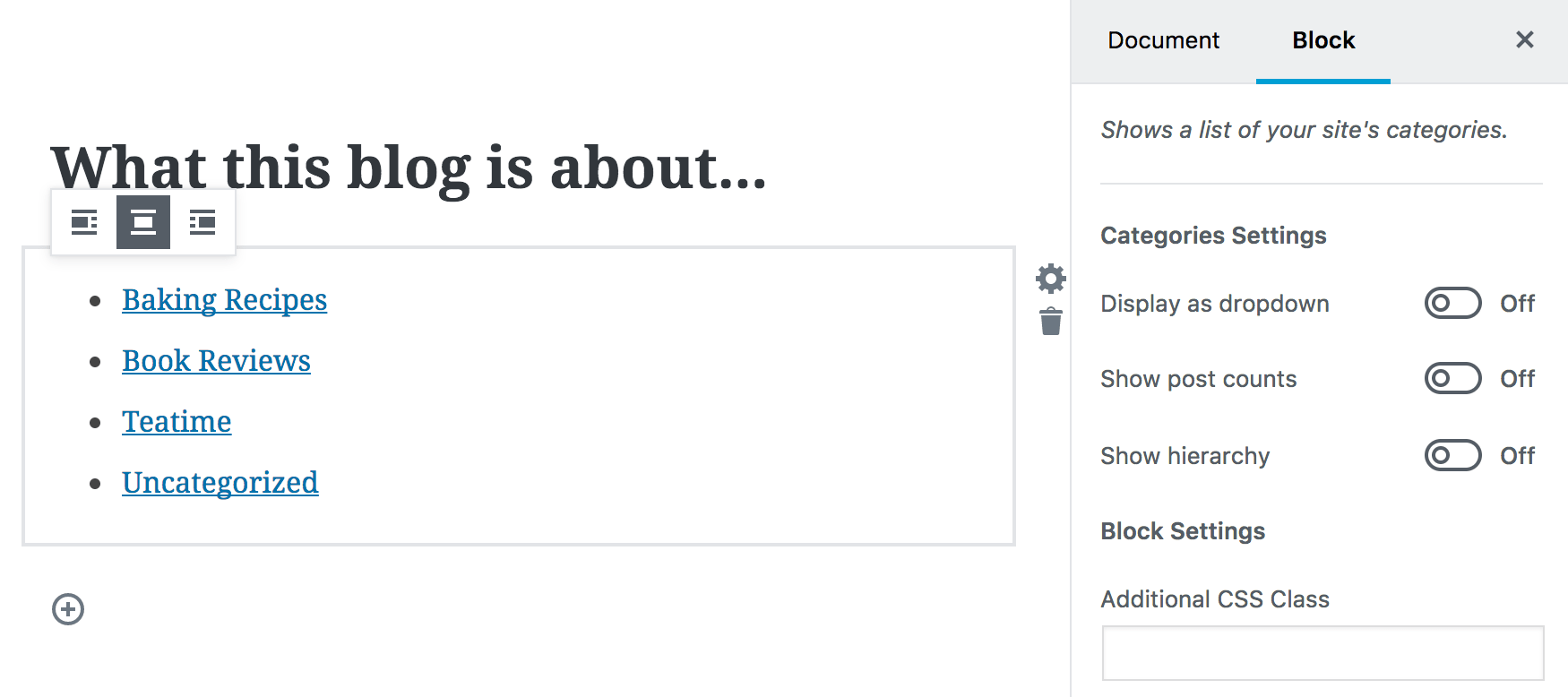 Новый блок Категории можно найти в разделе Виджеты, так как его выход основан на существующих категориях виджета. Дисплей по умолчанию — это алфавитный список категорий, но параметры блока включают параметры отображения в виде отбрасыва, отображения сообщений и иерархии отображения.