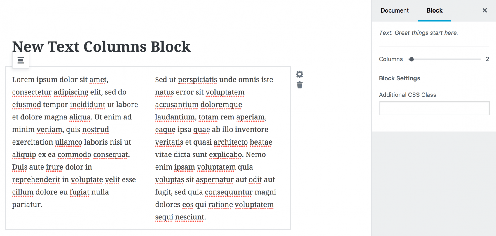 Новый блок текстовых столбцов позволяет пользователям разделить текстовое содержимое на несколько столбцов. Настройки включают скользящую шкалу для выбора 2-4 столбцов.