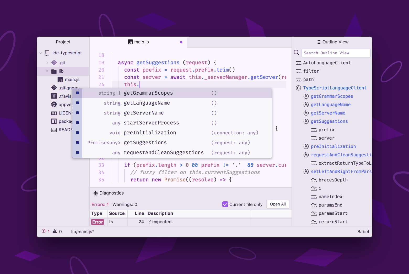 «Начало этого путешествия включает в себя более умный контекст-осознает автоматическое завершение, а также множество функций навигации кода, таких как наброски зрения, перейдите к определению, найти все ссылки, а также другие полезные функции, такие как навести до выявить информацию, ошибки и предупреждения (диагностика) и форматирование документов», — сказал инженер «Атома» Дэмиен Гвардия.