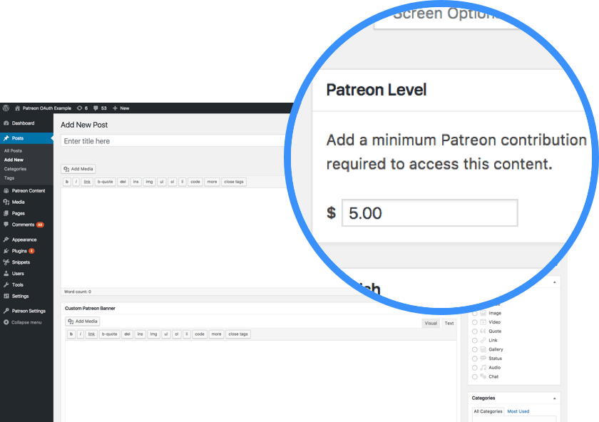 Плагин использует Patreon API, чтобы рассказать WordPress сайт, который является покровителем и какой уровень залога они находятся на. Меценаты могут нажать на кнопку «Связь с Patreon» включены с плагином и владельцы сайтов будут иметь возможность публиковать сообщения, которые можно просматривать только покровителей. Она также включает в себя возможность предоставить без рекламы опыт для посетителей посещения сайта.