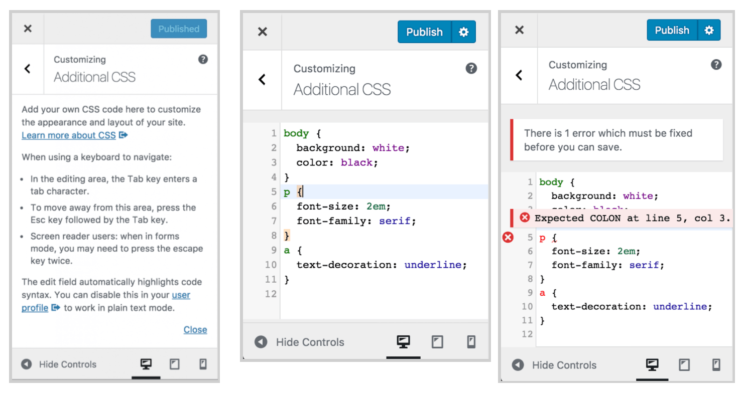 WordPress 4.9 включает в себя CodeMirror, который приносит синтаксис выделения, линтинг, и автоматическое завершение встроенных редакторов кода. Jetpack 5.5 «будет полагаться на WordPress для обработки синтаксиса выделения и пользовательских CSS модуль был обновлен, чтобы быть полностью совместимым с новым кодом изменения core.