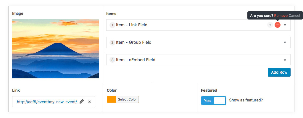 Версия 5.0 добавляет шесть новых полей, включая ссылку, группу, аккордеон, oEmbed, сборщик времени даты и поля клонов (функция ACF pro). Он также вводит новую страницу Инструменты, где пользователи могут экспортировать и импортировать полевые группы, как JSON.
