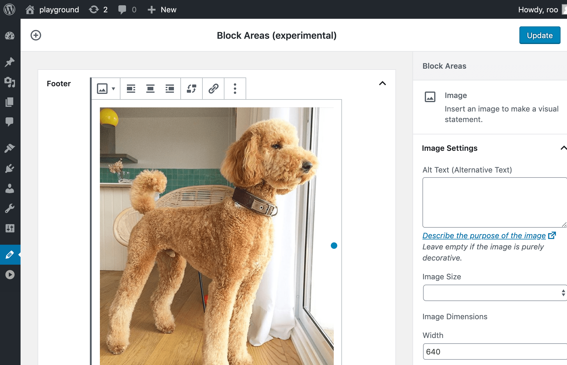 Экспериментальный экран виджетов также был обновлен, чтобы включить блок инспектора и глобального вставки. Этот экран может быть протестирован в соответствии с бета-меню Gutenberg в админ.