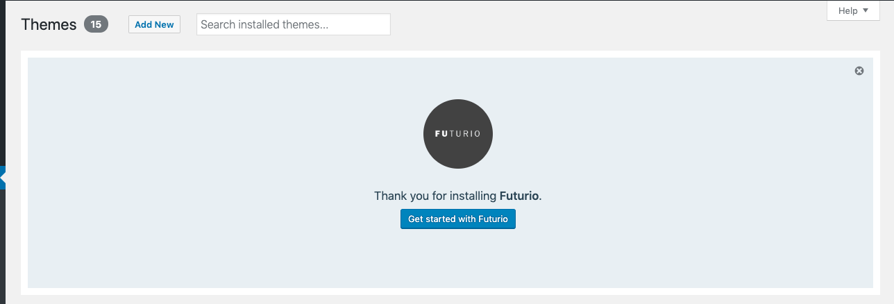 Тема Futurio также использовала подобное извещение типа для получать начатой после активации: