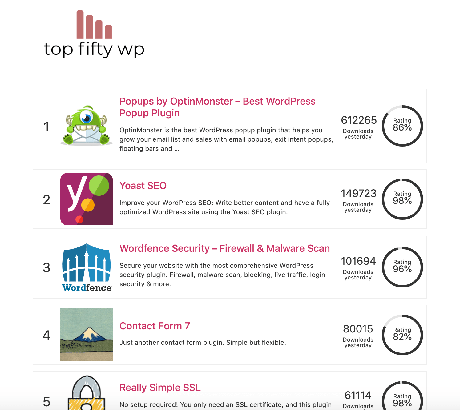 Top Fifty WP Is Now Available as a Plugin with Gutenberg Blocks for Top Plugins and Themes